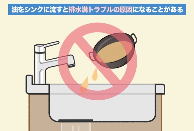 料理に使った油をそのまま排水口に流すと排水管の中で油が冷えて固まり、それが詰まりの原因になります。
