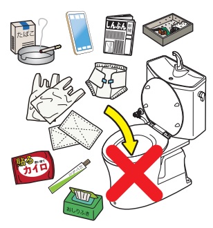 便器には便・トイレットペーパー以外は絶対に流さないで下さい。
