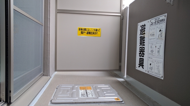 火災や震災等、非常時での避難の際、廊下へ出ての避難が難しい場合ベランダから避難することになります。