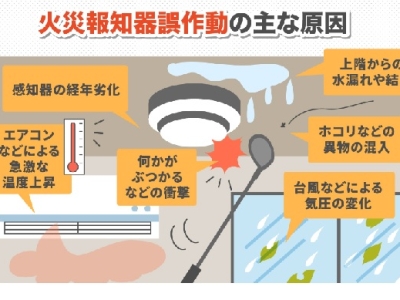 台風接近による急激な気圧変化により、火災報知器が誤反応しやすくなります。